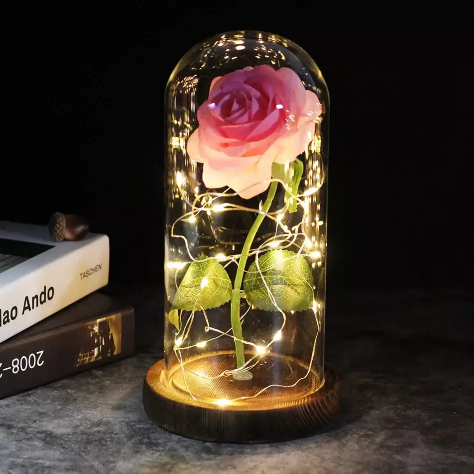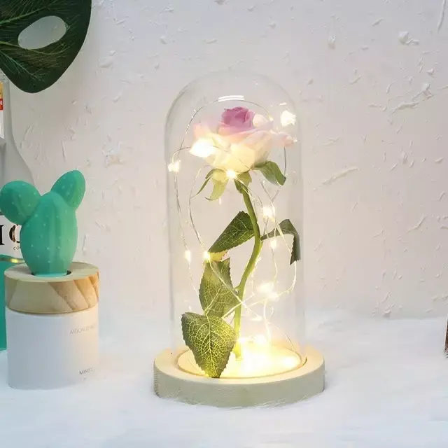 Classificação: Flores artificiais | Material: cúpula de vidro, fundo de madeira de pinho, rosa de flanela | Alimentado por: 3xaaa bateria (Não acompanha pilhas) |